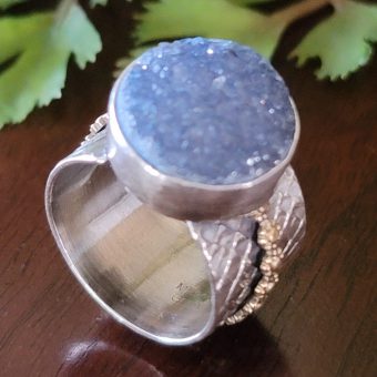 Blue Druzy Wide Band Ring Size 8