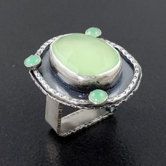 Rose Cut Green Chalcedony Ring Size 8 thru 9