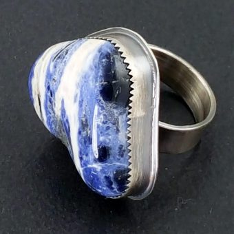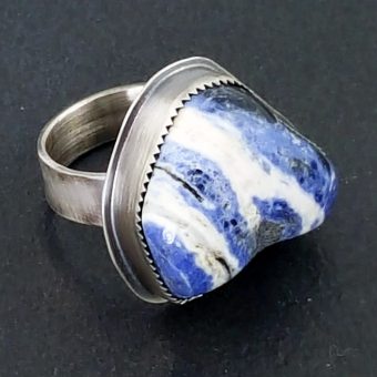 Blue Druzy Geode Half Ring Size 7 thru 7.75