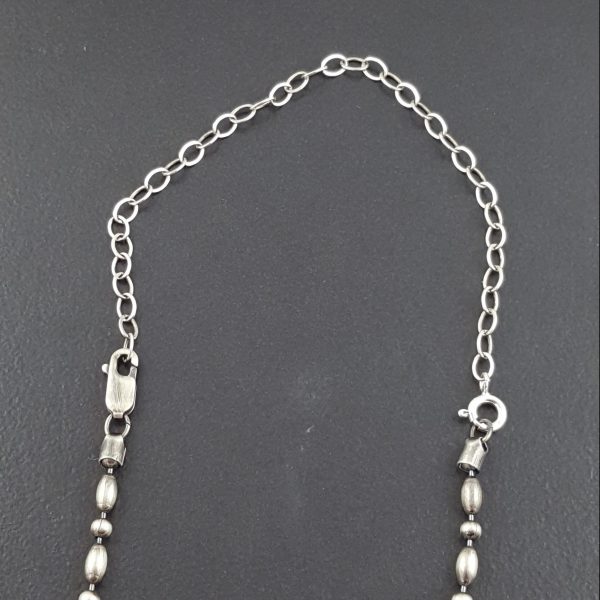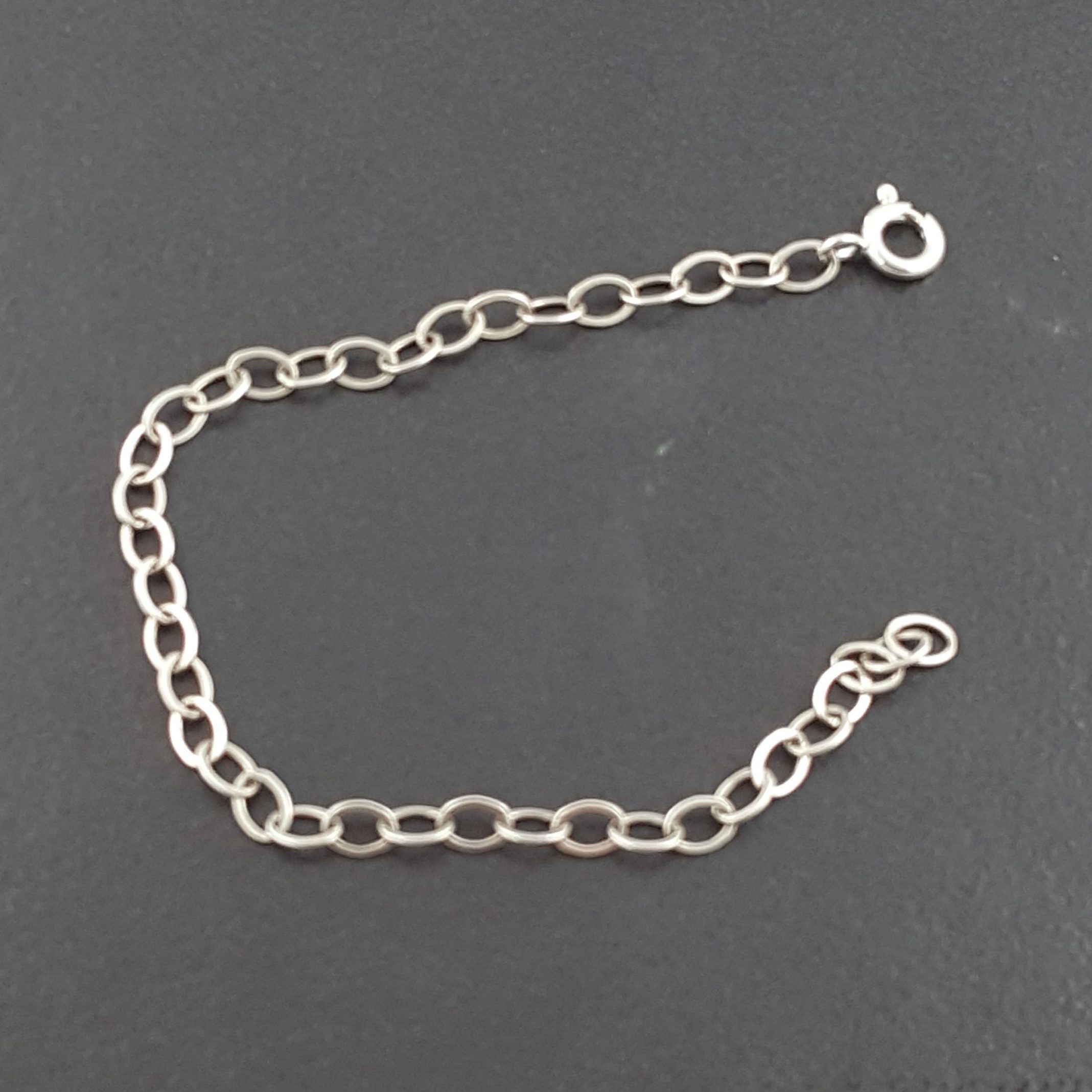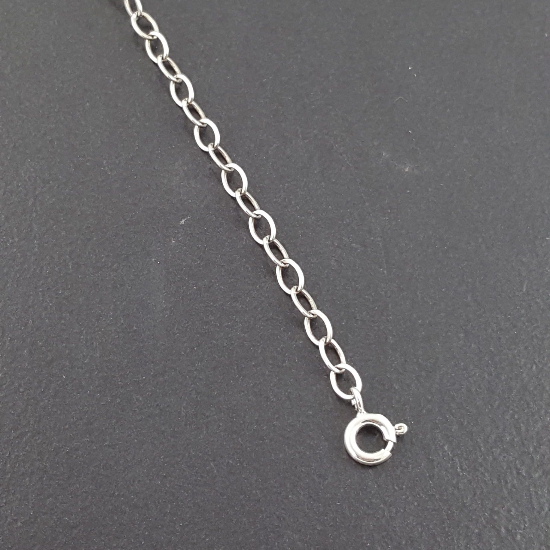 Oxidized sterling silver chain with a clasp. This is a wonderful little item to make any chain longer. Make an 18″ chain up to 24″ long or a 24″ chain up to 30″ long! Simply clasp the chain extender to the end of the necklace. Then clasp the necklace to the end of the extender. (see photos)