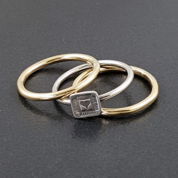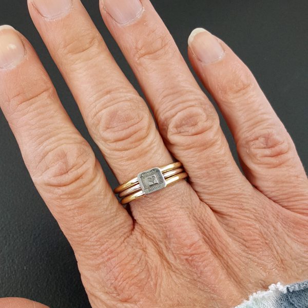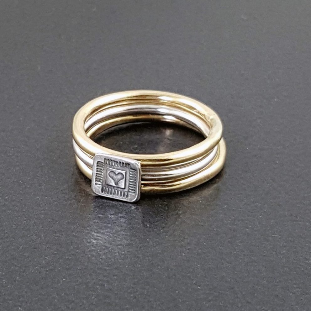 mixed metal set of 3 = 1 heart ring + 2 brass bands