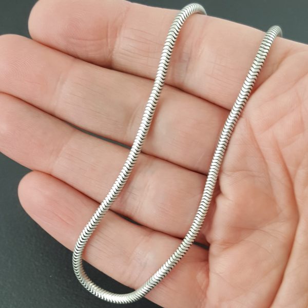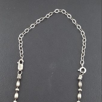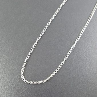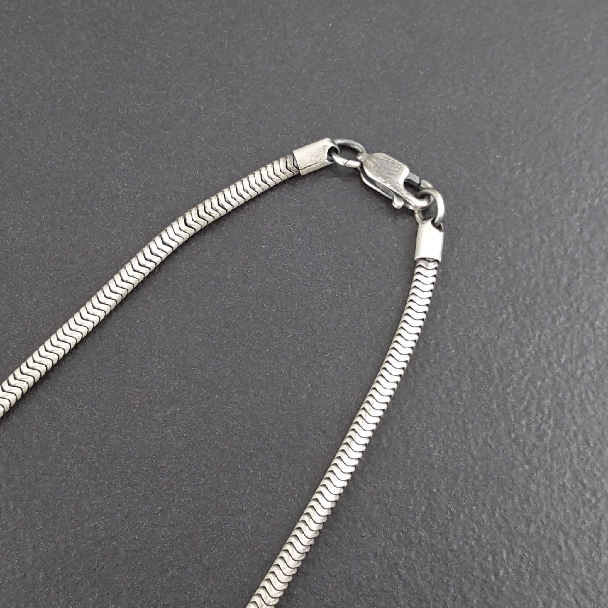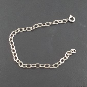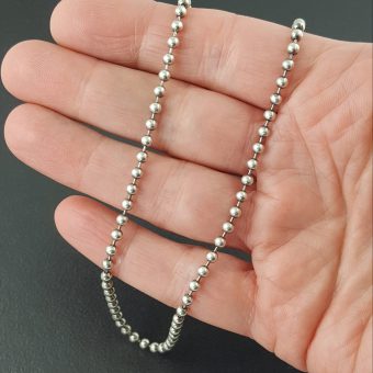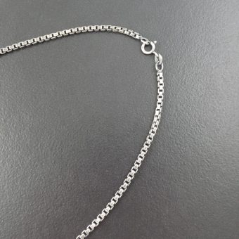 Sterling silver with lobster claw clasp. This chain is oxidized to bring out the detail. This item is available in 18, 20 and 24″ lengths. Last photo shows 16-24″ lengths.
